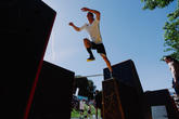 Ils évoluent au travers d’une zone parsemée d'une variété de blocs, de murs et de barres conçus pour refléter les différents obstacles rencontrés dans les zones urbaines. Pour les surmonter, les athlètes doivent utiliser une gamme de techniques, comme le saut de chat (cat leap), le saut de bras (arm jump), le saut de fond (drop jump) et le wall run (passe-muraille).