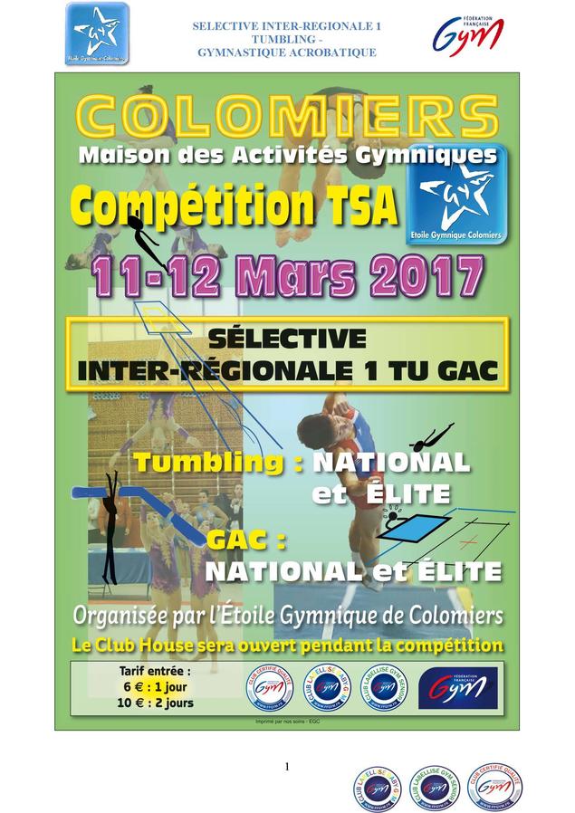 Colomiers (31)Colomiers accueille, les 11 et 12 mars 2017, la sélective interrégionale Sud 1 TU-GAc.