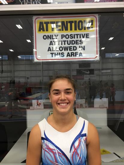 Après 3 jours de stage, les courbatures ont commencé à se faire ressentir, mais motivées par le slogan "positive attitude" affichée partout dans la salle, les filles ont toujours gardé le sourire même dans l’effort ! L’entraînement de l’après-midi était consacré à la reprise des éléments acrobatiques et des liaisons aux barres asymétriques. Mélanie De Jesus Dos Santos et Coline Devillard ont partagé la piste d’acro avec Simone Biles en pleine préparation pour Doha.