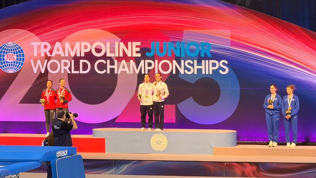 La deuxième journée des Championnats du monde juniors de trampoline et tumbling a offert de grands moments aux jeunes tricolores, avec un titre mondial en trampoline synchronisé, des finales disputées et des performances solides dans toutes les disciplines.Trampoline synchronisé femmes : un titre mondial pour Alice Chaminade et Sophie DarousLe moment fort de cette journée est venu du trampoline synchronisé féminin. Le duo français composé d’Alice Chaminade et Sophie Darous a réalisé une finale parfaitement maîtrisée, leur permettant de décrocher le titre de championnes du monde juniors avec un score de 46.890 points. Déjà sacrées à Birmingham en 2023, les deux gymnastes confirment leur domination sur la scène internationale en s’offrant un deuxième titre mondial consécutif. Une performance remarquable qui illustre leur complicité, leur précision et leur régularité au plus haut niveau.Trampoline synchronisé hommes : Jolhann Amon et Anton Dubreuil dans le top 8Chez les garçons, la paire Jolhann Amon / Anton Dubreuil avait décroché son billet pour la finale au terme des qualifications.En finale, ils signent une prestation qui leur permet de prendre la 8e place avec un score de 9.690 points.Trampoline hommes : une superbe 4e place pour Jolhann AmonEn trampoline individuel, Jolhann Amon poursuit sa très belle compétition en se hissant à la 4e place mondiale grâce à un score de 58.340 points.Tumbling : deux finalistes françaisAprès une belle qualification, Gabriel Courtois a poursuivi sur sa lancée en finale. Grâce à une routine dynamique et bien contrôlée, il décroche une très belle 5e place, avec un total de 23.000 points. Une performance de haut niveau qui le place parmi les meilleurs tumblers mondiaux de sa catégorie.En finale féminine, Tess Le Jeune réalise elle aussi une prestation solide. Avec un score de 22.100 points, elle décroche la 7e place.